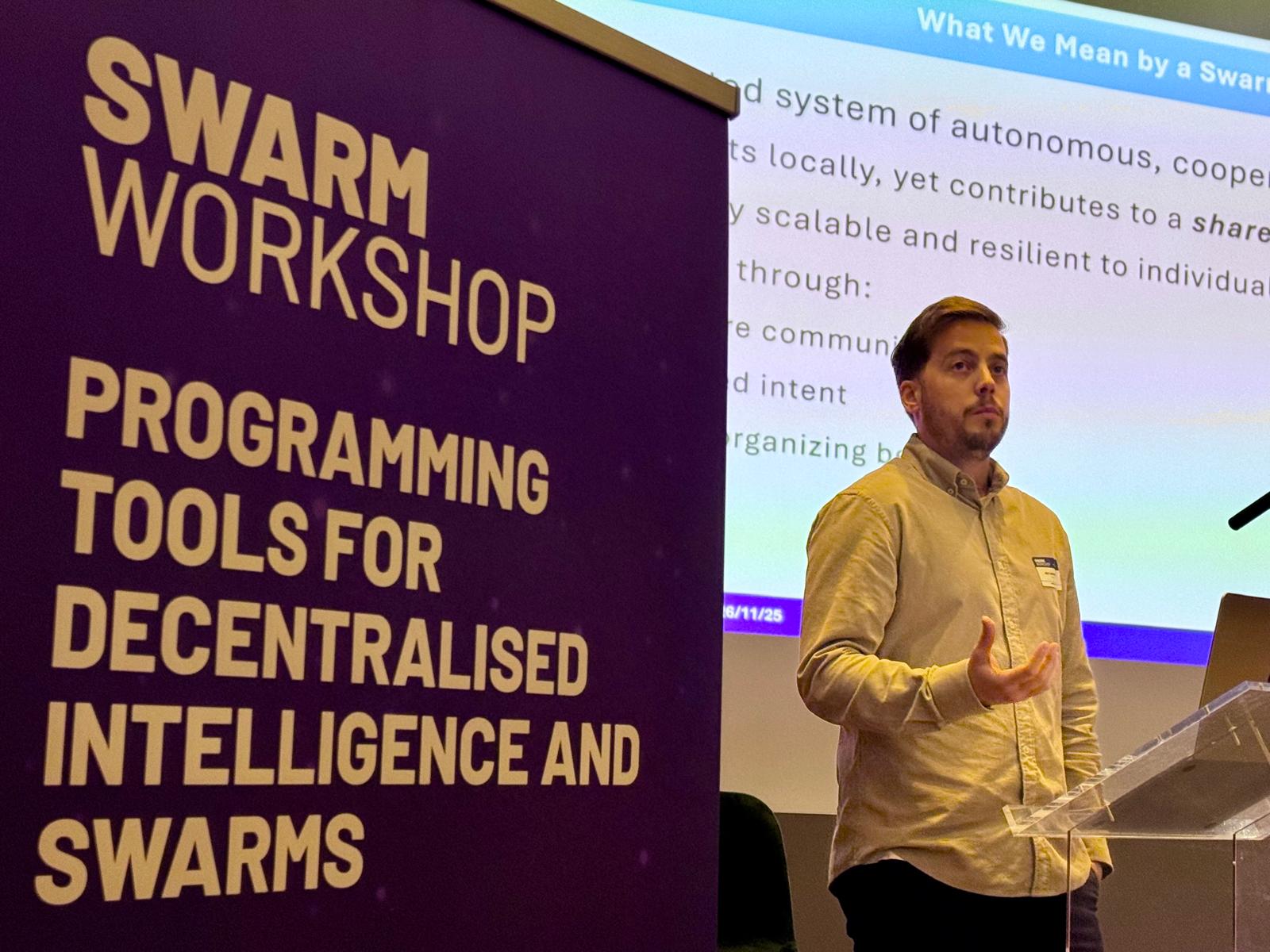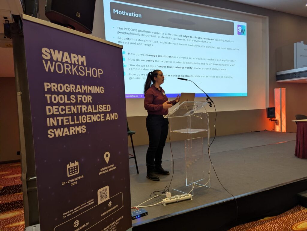 Brussels, 26–27 November 2025 — The Swarm Workshop 2025: Programming Tools for Decentralised Intelligence and Swarms convened more than 120 researchers, engineers, and innovators from across Europe at the Bedford Hotel to explore the accomplishments of five Horizon Europe projects that have developed impactful research and technological applications for decentralised intelligence. Over two days of keynotes, technical sessions, and hands-on demonstrations, participants saw how swarm-based architectures are becoming essential building blocks for distributed AI, adaptive cyber-physical systems, and next-generation digital infrastructure. Among the five organising projects under the HORIZON-CL4-2022-DATA-01-03 research cluster (topic swarm computing) — P2CODE, OASEES, OpenSwarm, SmartEdge, and TaRDIS — P2CODE demonstrated its vision and achievements to secure multi-agent orchestration and three impactful demos spanning industrial safety, emergency response, and critical infrastructure monitoring.