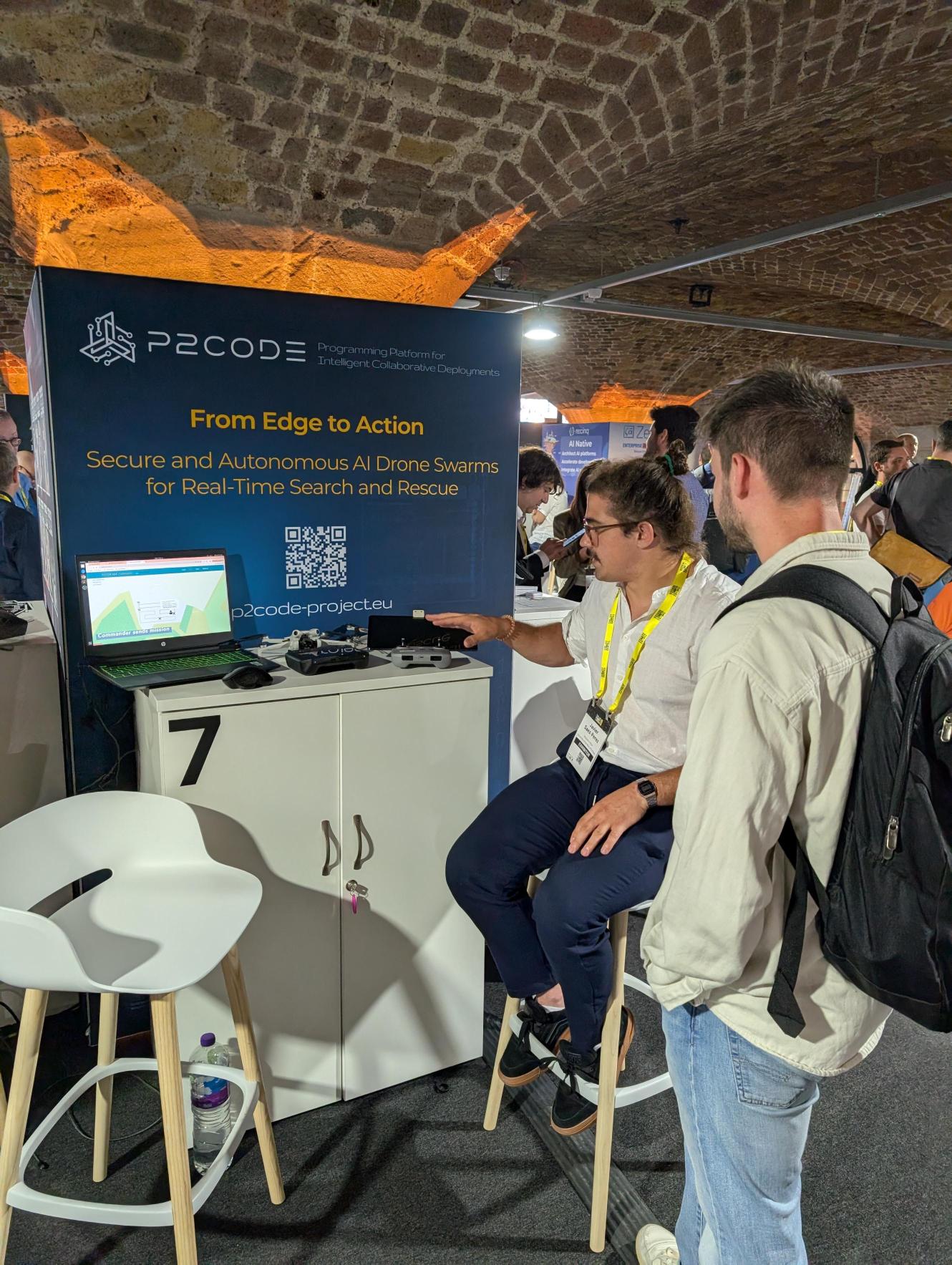 The conference served not only as a demo opportunity but also as a platform to amplify awareness of the P2CODE project’s unique approach to trustworthy, AI-driven, edge-enabled systems. Visitors explored the technology first-hand and engaged in discussions about its potential across sectors such as emergency services, critical infrastructure, and environmental monitoring.